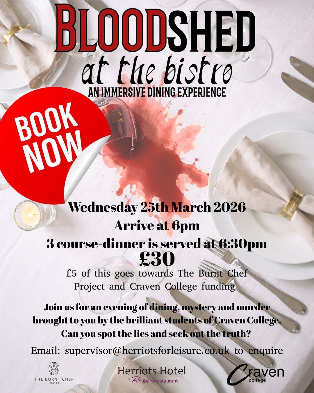Dine, watch, suspect and solve the crime at Herriots Hotel with a three-course meal and murder mystery performance from students at Craven College.